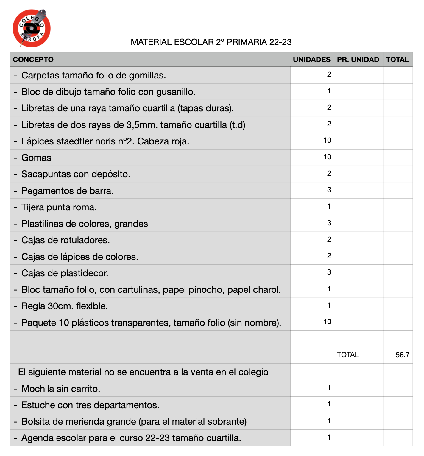 Material Escolar 2º primaria 22-23